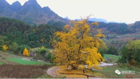 在黔江區金溪鎮金溪社區11組,一棵樹齡上千年,樹高約31米,冠幅達25米,需要七、八個成年人才能合圍的銀杏古樹,再一次披上了耀眼的“金衣”,成為了冬日里大山深處最美的風景。