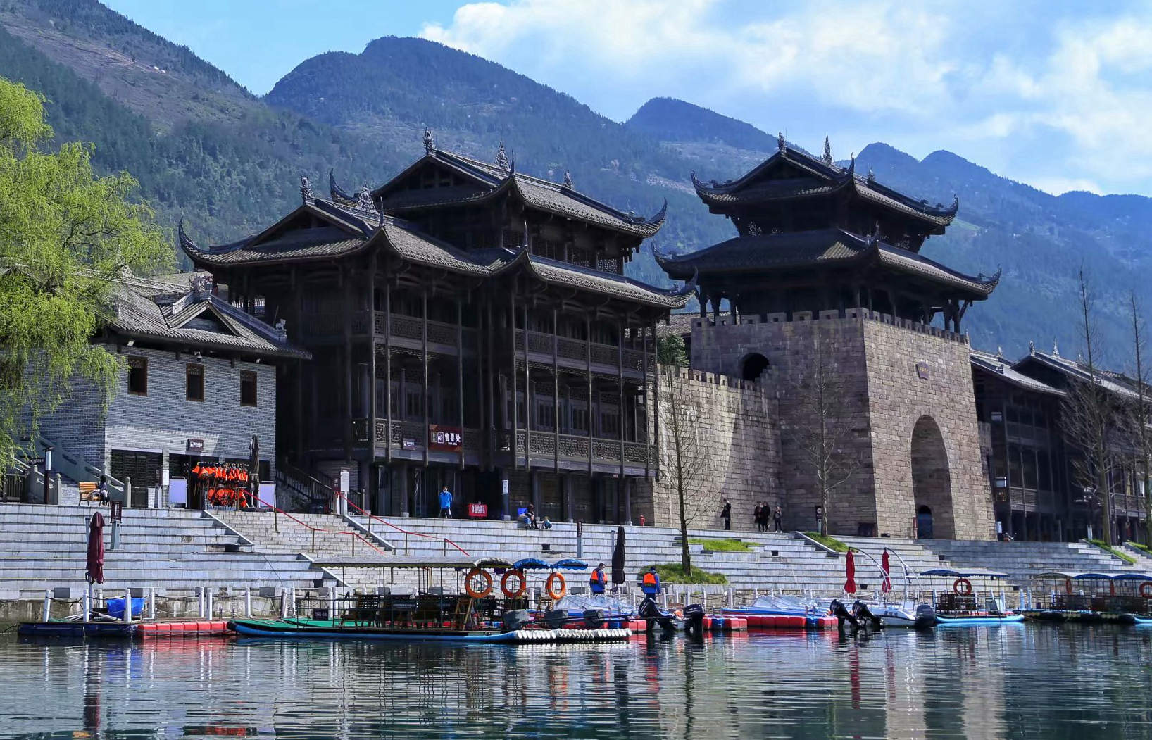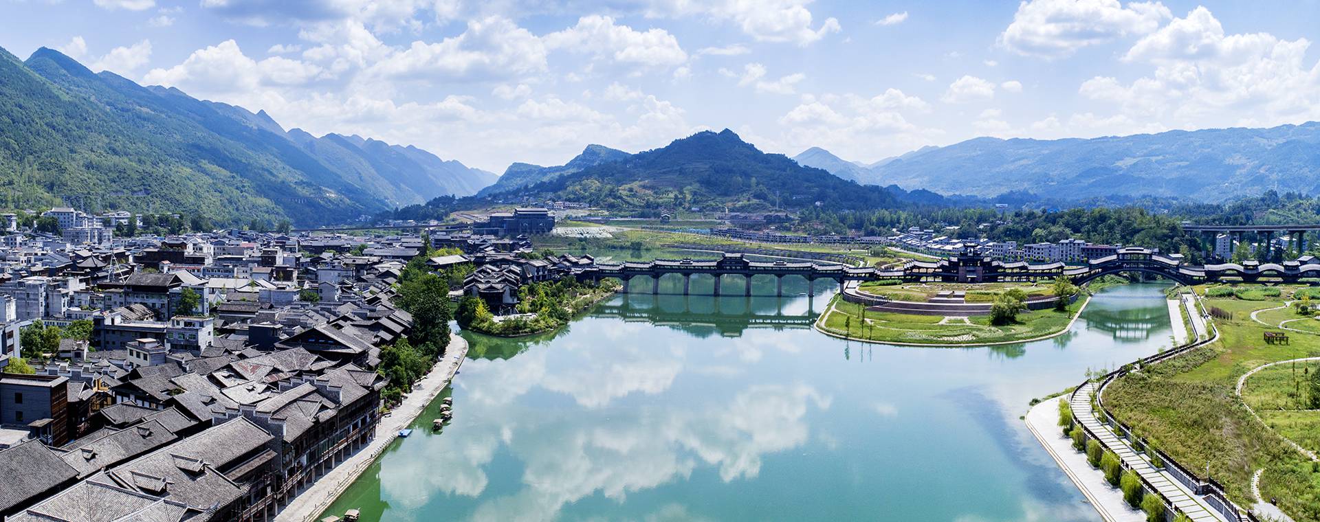 濯水景區位于重慶市黔江區東南部,地處烏江第一大支流——阿蓬江畔,為阿蓬江國家濕地公園的重要組成部分,面積4.8平方公里,渝懷鐵路、包茂高速、319國道穿境而過,交通極為便利。景區內江河交匯,濯水古鎮風華悠遠,風雨廊橋跨江河、連兩岸、通三地,似仰天長嘯飛龍欲絕塵而去;蒲花暗河蜿蜒曲折,婀娜多姿,水上天生三橋猶如鬼斧神工。