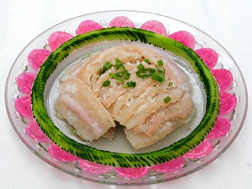 外形四四方方,顏色翠綠非常,口感爽滑Q彈。吃的時候放上辣椒、醬油、醋以及蔥姜末、大蒜水等佐料攪拌一下,然后送入口中,清涼爽滑的感覺定會讓人欲罷不能。