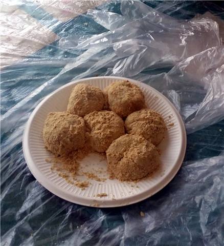 用油炸花生米,核桃仁、黃豆、米泡、苞谷泡等,打上三四個雞蛋,放入煮開的油茶內,味道鮮花,具山村風味。